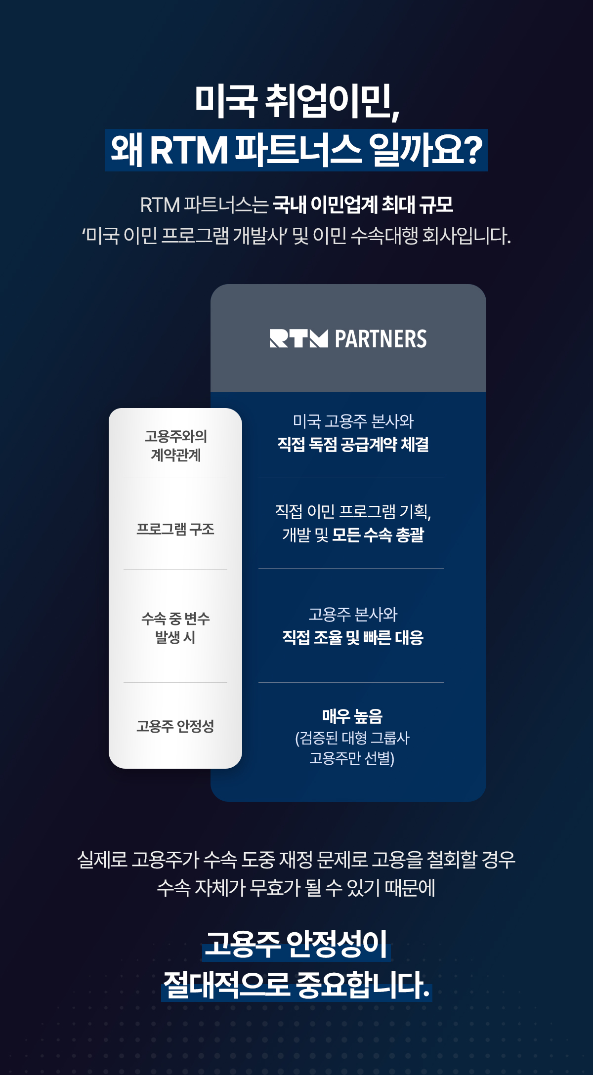 미국 내 합법적 취업과 동시에 영주권 취득까지, RTM의 독보적인 취업이민 프로그램을 소개합니다.
