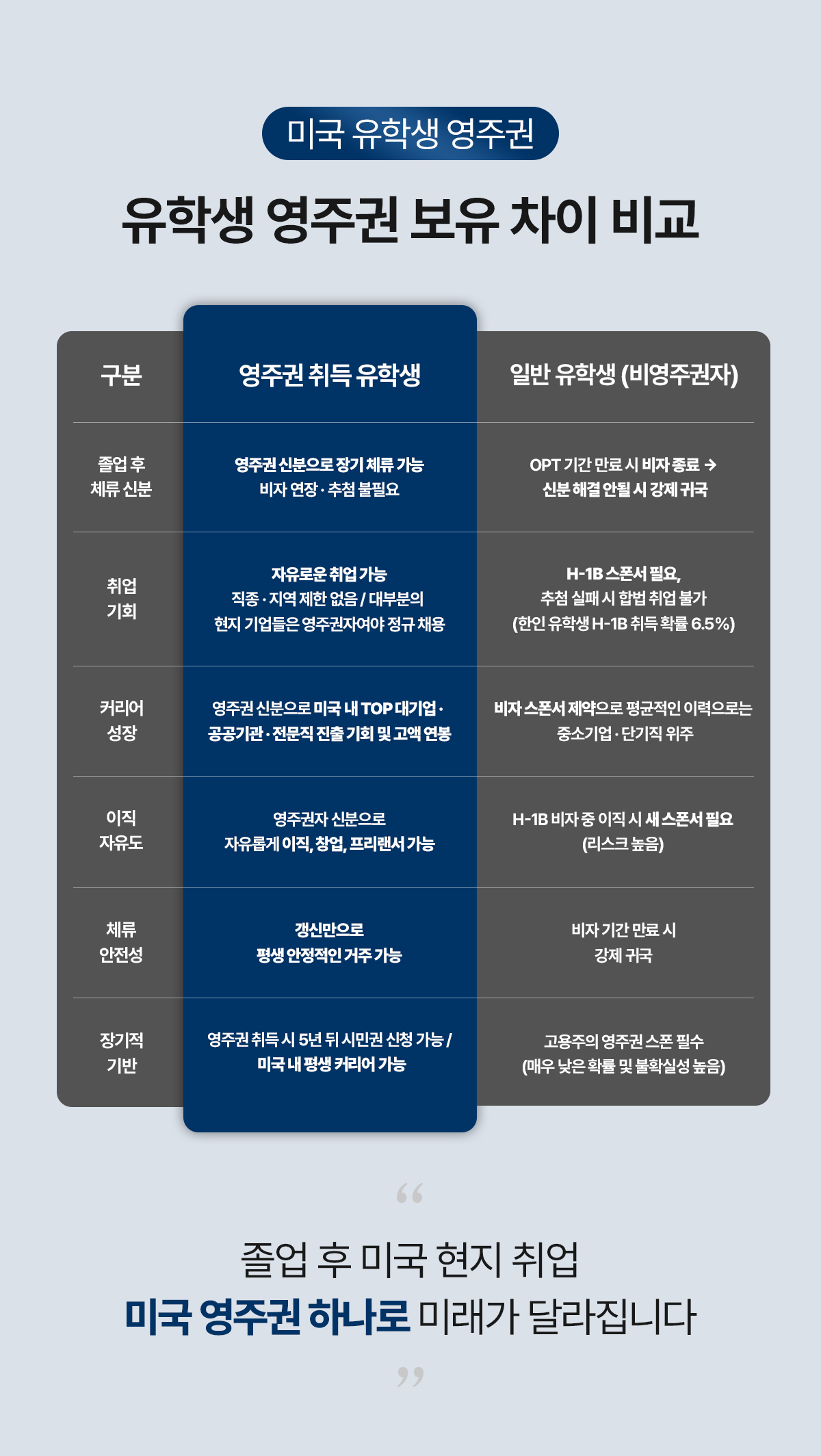 맞춤형 미국 영주권 컨설팅 유학생 영주권 취득