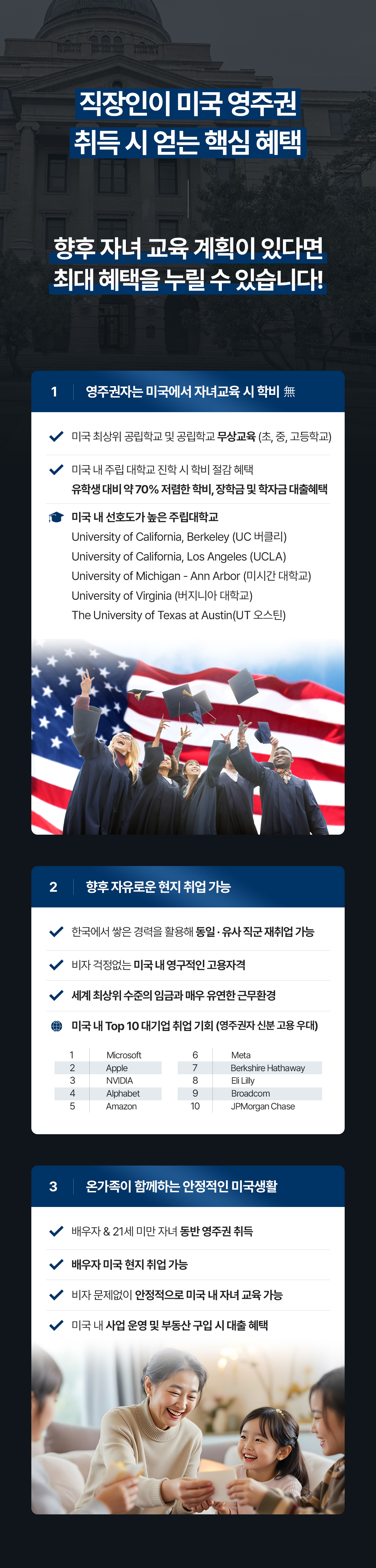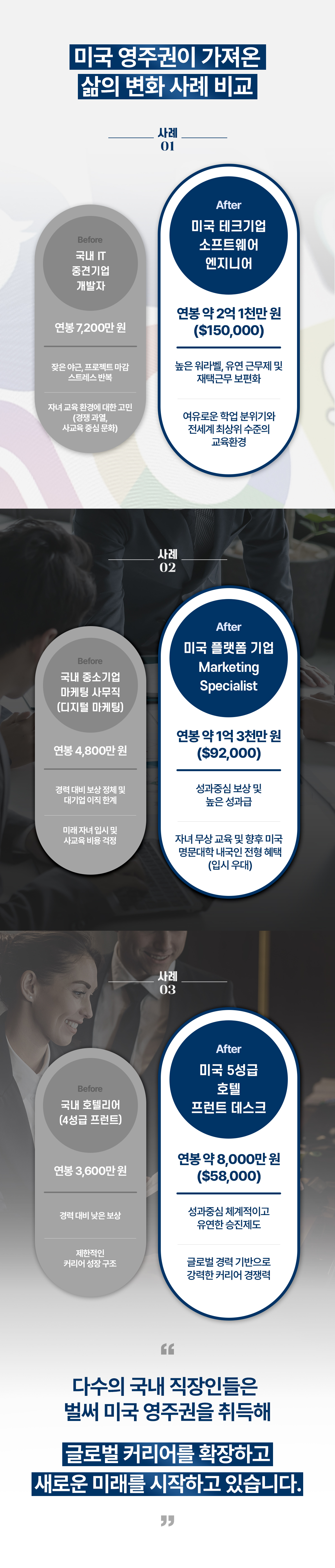 더 나은 삶을 꿈꾸는 직장인들이 안정적으로 미국 영주권을 취득할 수 있는 합법적 경로를 소개합니다.